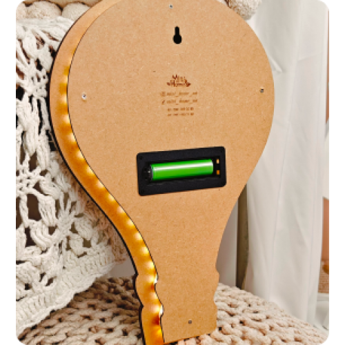 Нічник підсвічується світлодіодною стрічкою, яка для безпеки покрита силіконовим захистом та має захисний короб. Розсіювання світла здійснюється з бокової частини виробу, що повторює його форму та забезпечує рівномірне освітлення з усіх сторін.